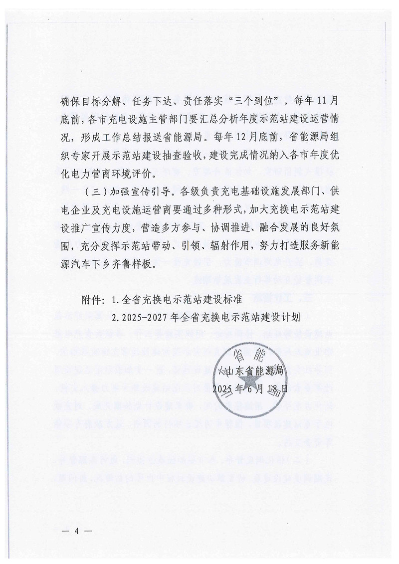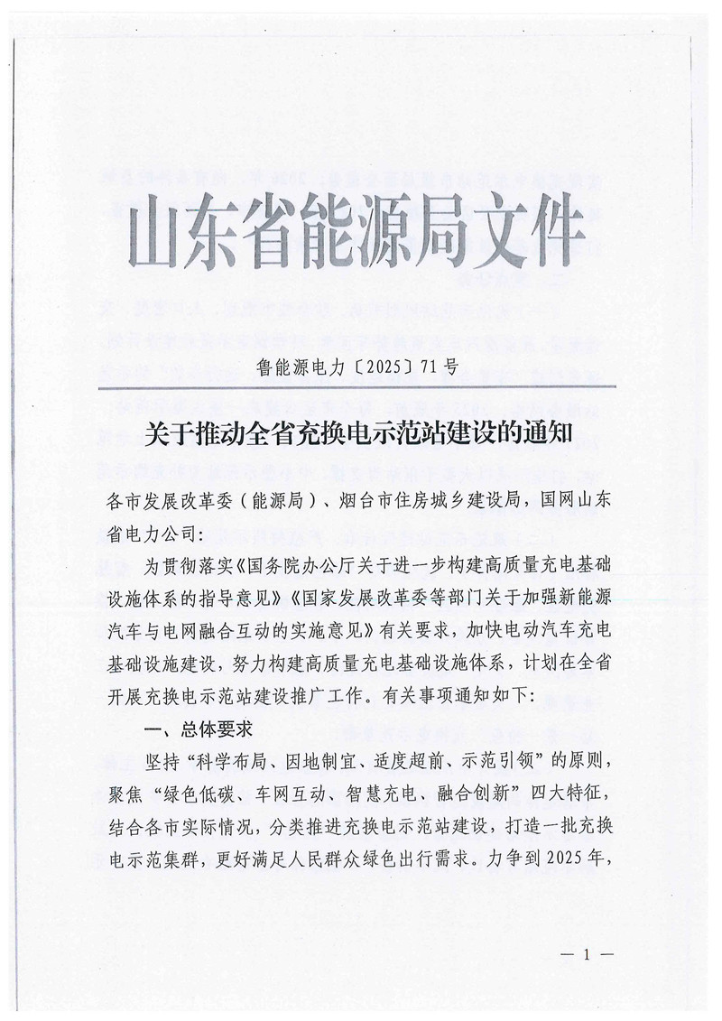 感謝貴局多年來對縣發(fā)改局工作的關(guān)心和支持!2025年6月18日,山東省能源局印發(fā)了《關(guān)于推動(dòng)全省充換電示范站建設(shè)的通知》,對全省充換電示范站建設(shè)工作進(jìn)行安排部署。9月24日,國家發(fā)展改革委等部門研究制定了《電動(dòng)汽車充電設(shè)施服務(wù)能力“三年倍增”行動(dòng)方案(2025-2027年)》,加大力度完善電動(dòng)汽車充電設(shè)施服務(wù)網(wǎng)絡(luò),提升消費(fèi)品質(zhì)。近期,市能源局下達(dá)我縣2025-2027年建設(shè)省充換電示范站任務(wù)目標(biāo)為:完成2個(gè)中型和2個(gè)小型示范站。根據(jù)國家省市有關(guān)部署和縣領(lǐng)導(dǎo)指示要求,我縣規(guī)劃了正大電力便民示范站、幸福公館示范站、“三館一官’示范站等省級示范站,并正在加緊施工中。為確保我縣充換電示范站建設(shè)順利推進(jìn),請貴局根據(jù)部門職能,協(xié)同配合做好示范站建設(shè)工作,為省級充換電示范站順利建設(shè)提供有力保障。